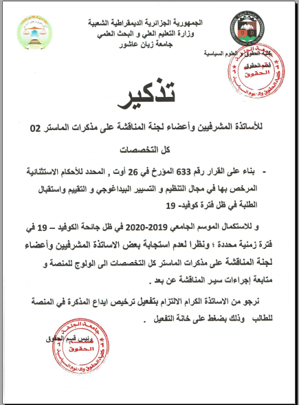إعلان لطلبة ما بعد التدرج بخصوص عمليتي التسجيل و إعادة التسجيل للسنة الجامعية 2021/2020