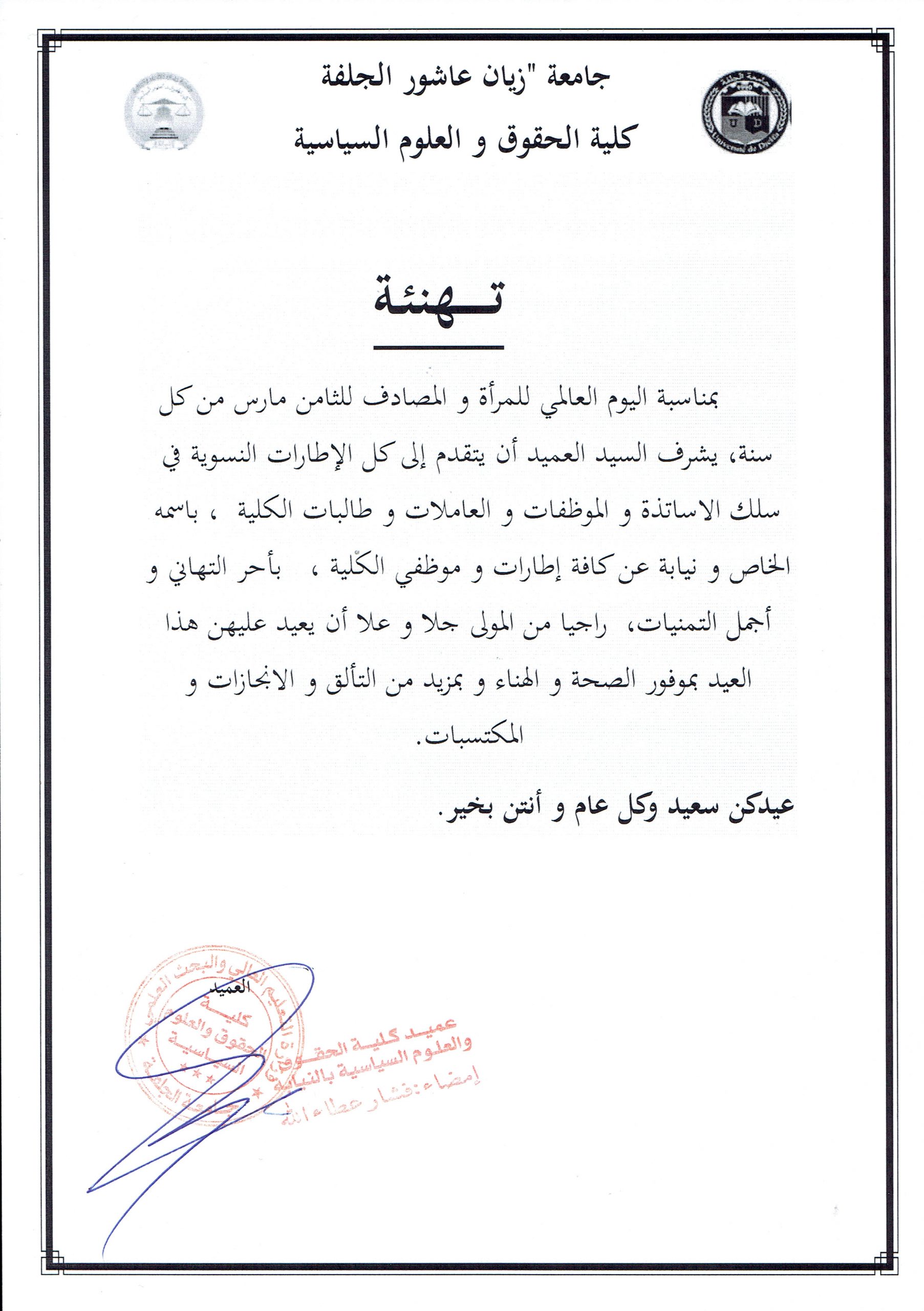تهنئة بمناسبة اليوم العالمي للمرأة