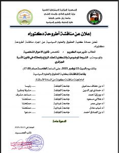 اعلان عن مناقشة اطروحة دكتوراه