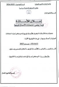 اعلان للاساتذة بخصوص امتحانات الاعمال الموجهة